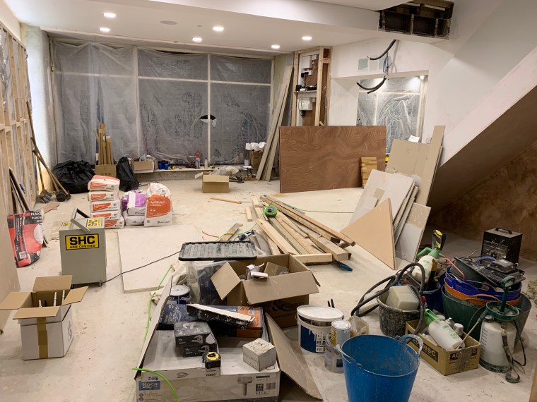 yoga studio storage & bathroom